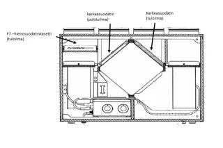 In order to keep the ventilation unit functioning properly, the heat recovery cell needs to be cleansed regularly. Use only suitable cleaning products, when cleaning the cell. We recommend Likavex- cleanser, which is safe to use for cleansing of ventilations but also other places in the house.